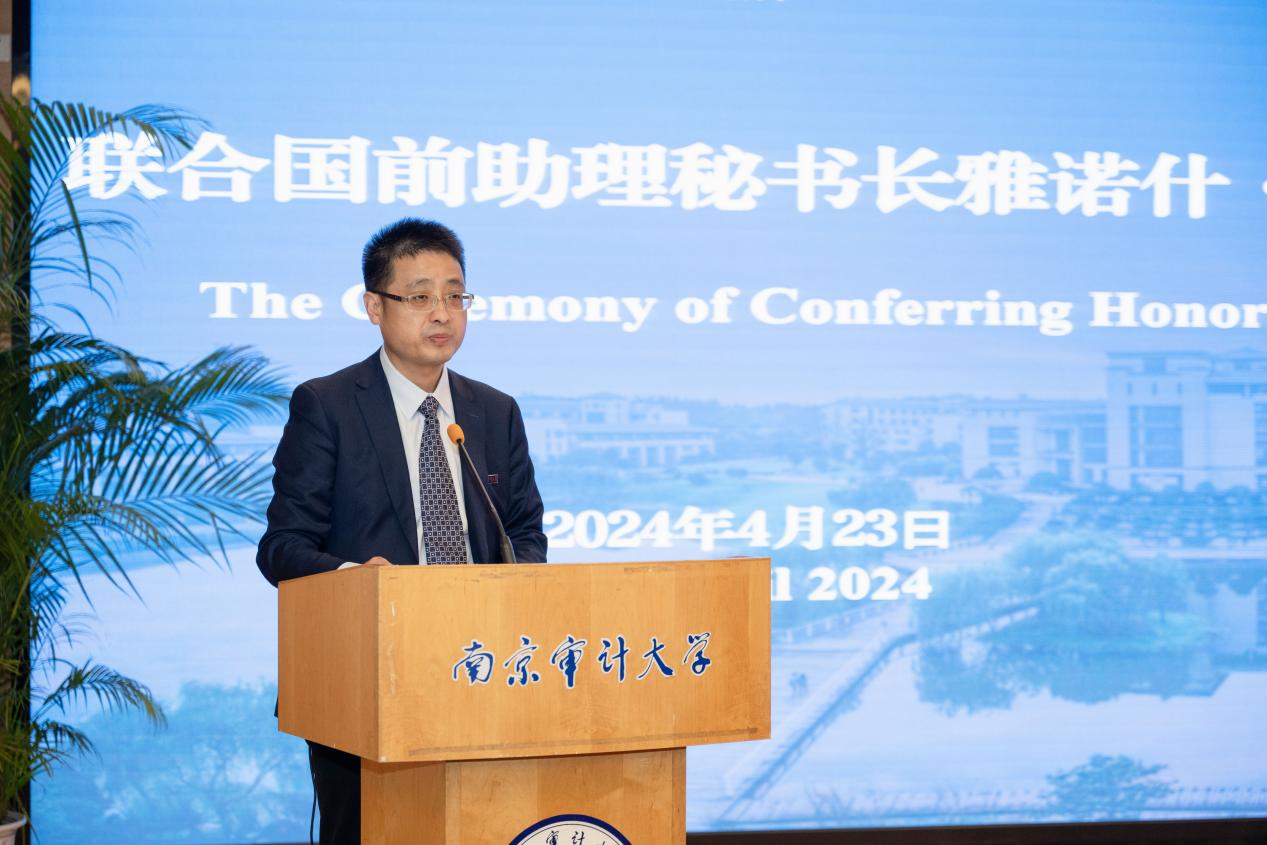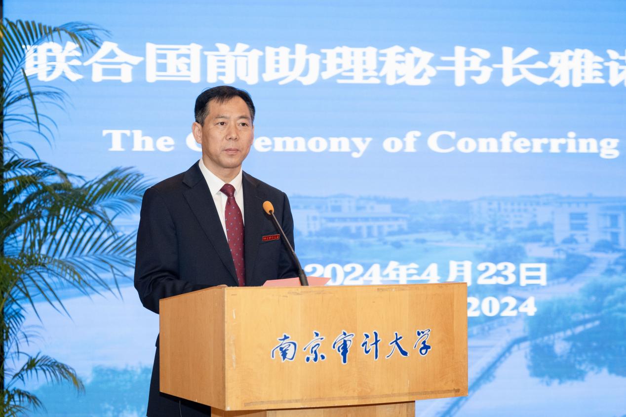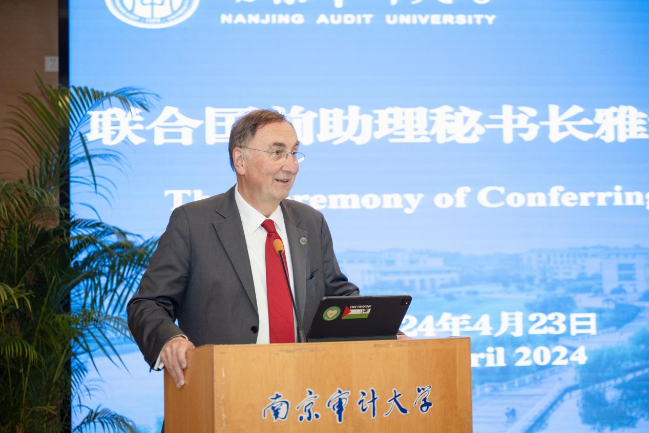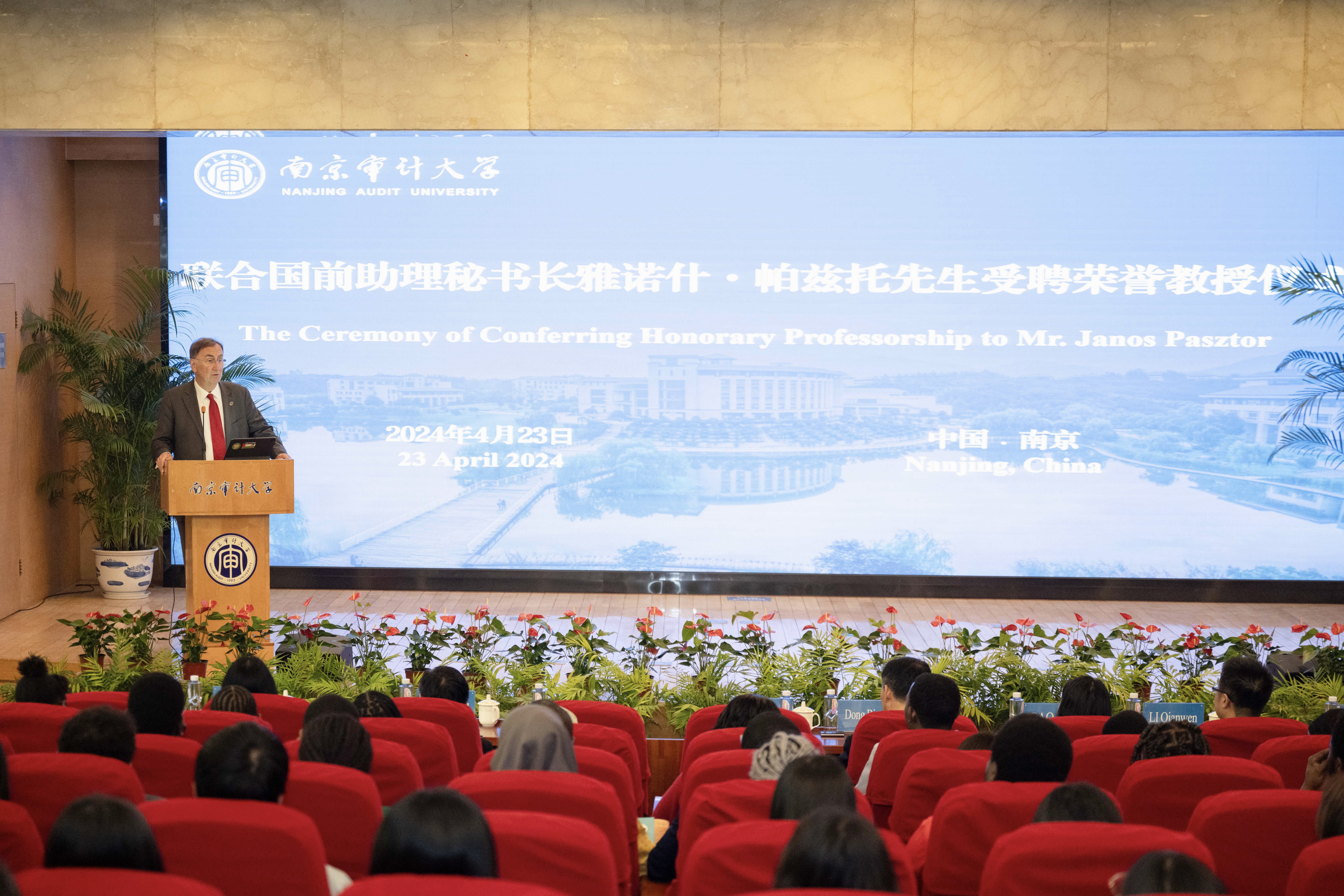 4月23日,联合国前助理秘书长雅诺什·帕兹托受聘beat365vip官网登录入口荣誉教授仪式暨演讲会在敏达学术报告厅举行。联合国前助理秘书长雅诺什·帕兹托,欧盟亚洲中心教务委员会主任高玲,beat365vip官网登录入口校长董必荣出席受聘仪式,相关部门负责人及师生代表参加。副校长李乾文主持聘任仪式。