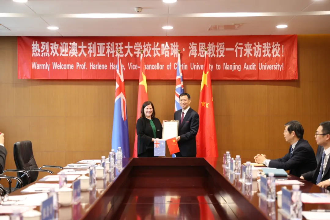 会上,举办科廷大学校长哈琳·海恩受聘beat365vip官网登录入口荣誉教授仪式,董必荣为哈琳·海恩校长颁发beat365vip官网登录入口荣誉教授聘书、佩戴南审校徽。双方互赠纪念品。