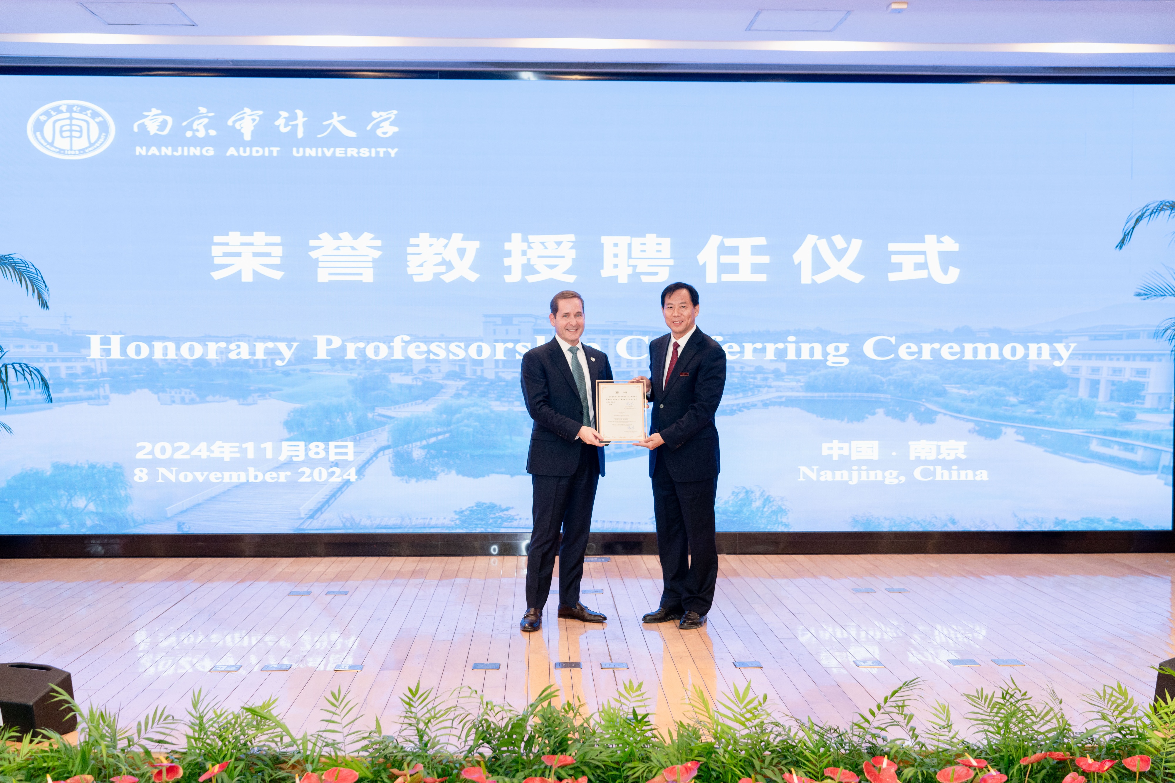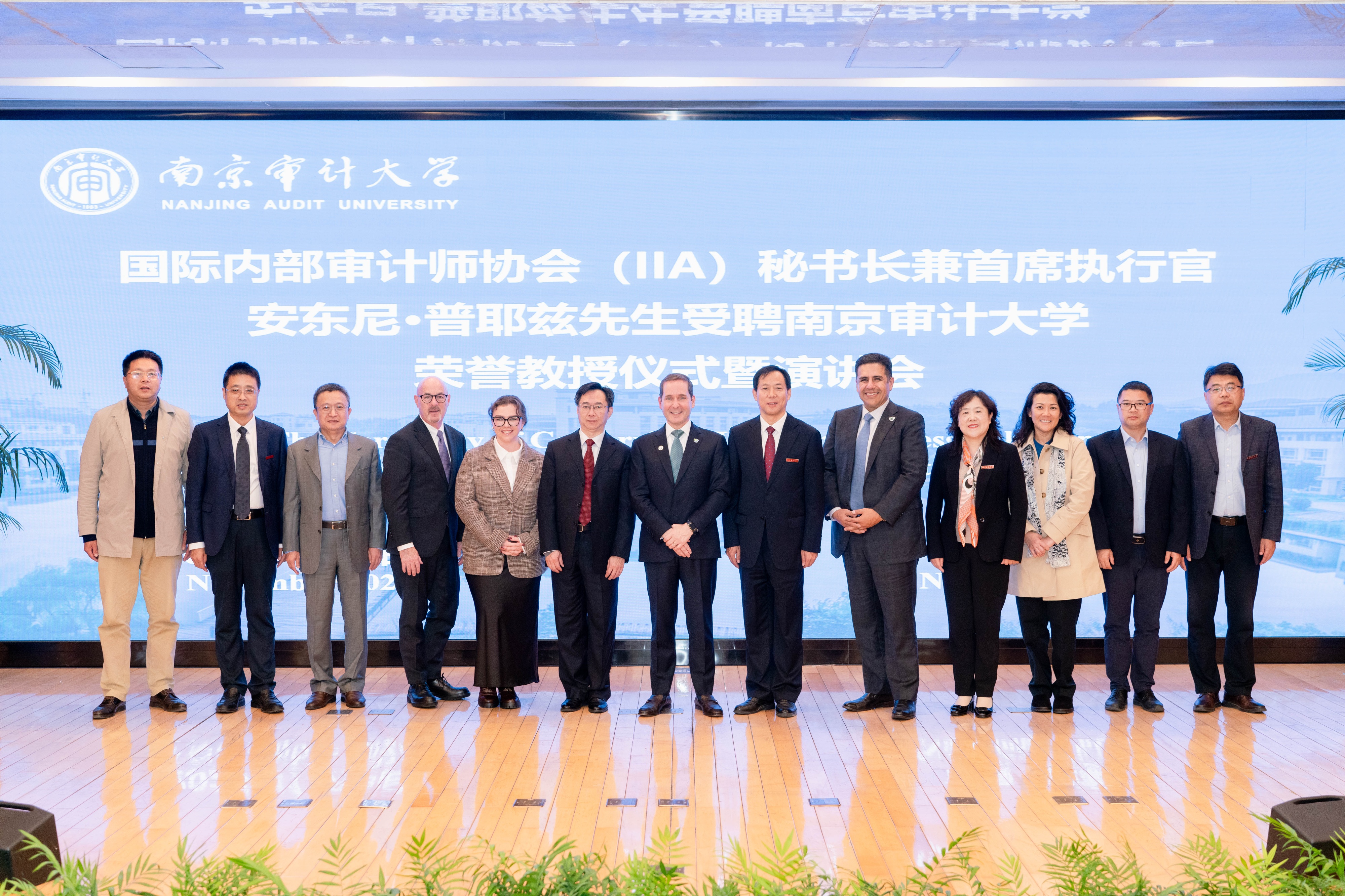 今天,国际内部审计师协会秘书长兼首席执行官安东尼·普耶兹先生受聘beat365vip官网登录入口荣誉教授仪式暨演讲会在敏达学术报告厅举行。国际内部审计师协会、中国内部审计协会相关负责人,beat365党委书记、校长董必荣,党委常委、副校长卢亚娟等出席聘任仪式,相关部门负责人及师生代表参加。党委常委、副校长李乾文主持仪式。