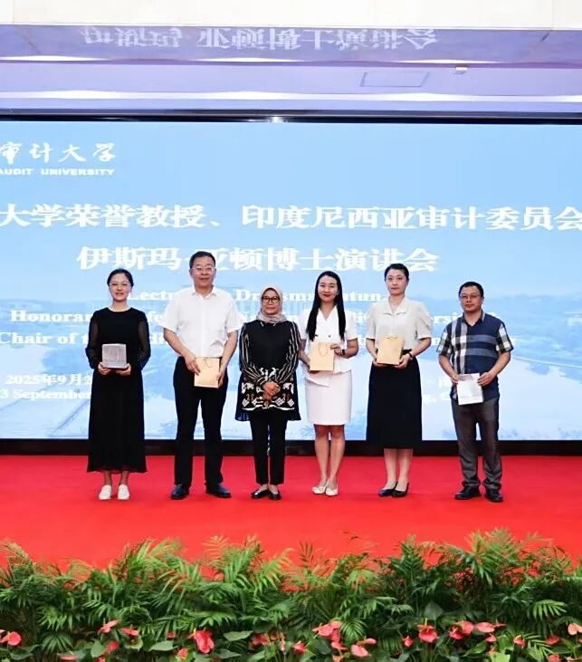 亚顿博士向beat365vip官网登录入口为提升印度尼西亚审计工作人员专业能力所作出的贡献和为本次演讲会付出辛劳的师生表示感谢,并赠送礼物。